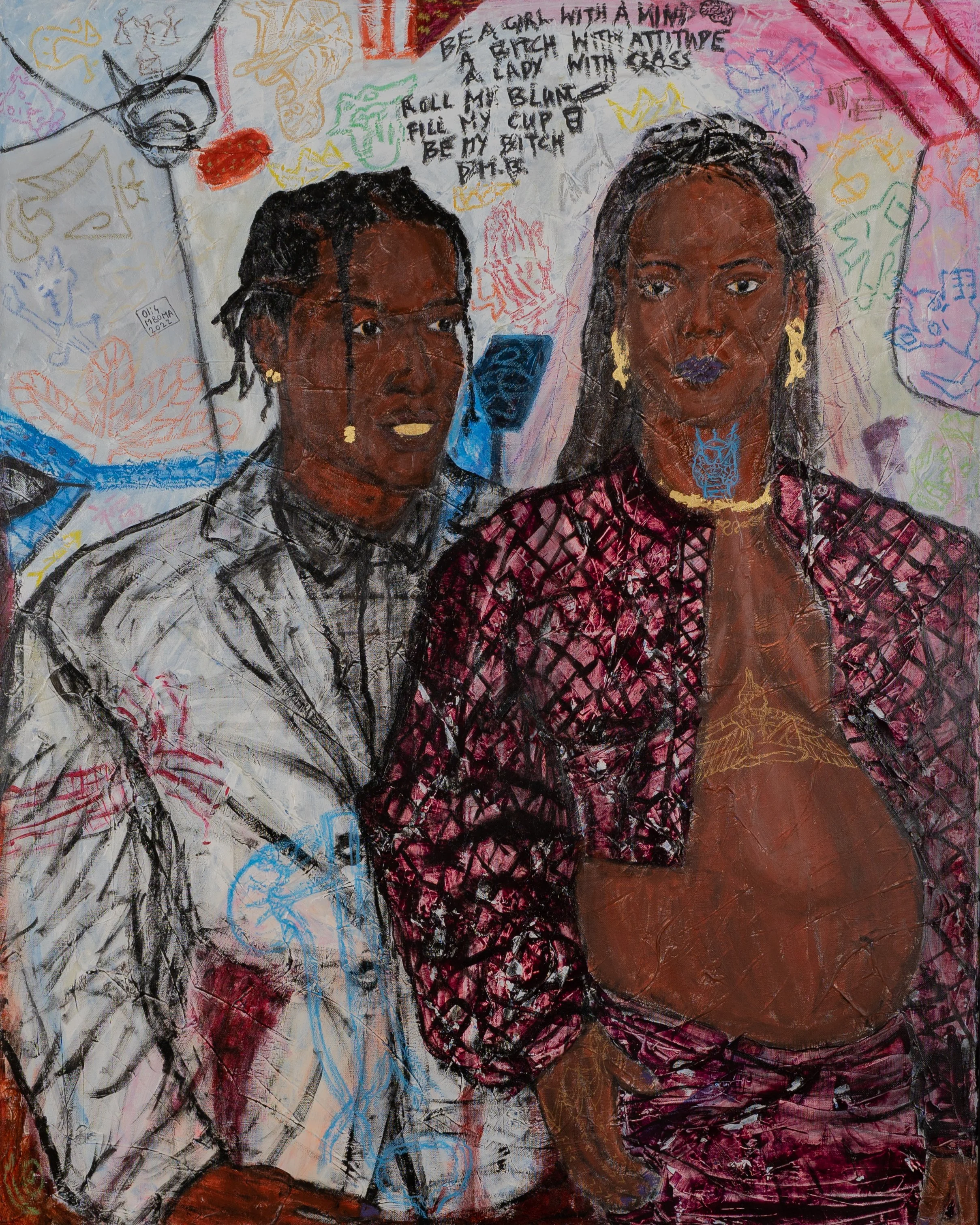 Acrylique, pastel, l’huile et feuille d'or 24 carats (24K) sur toile / 100x150 cm
