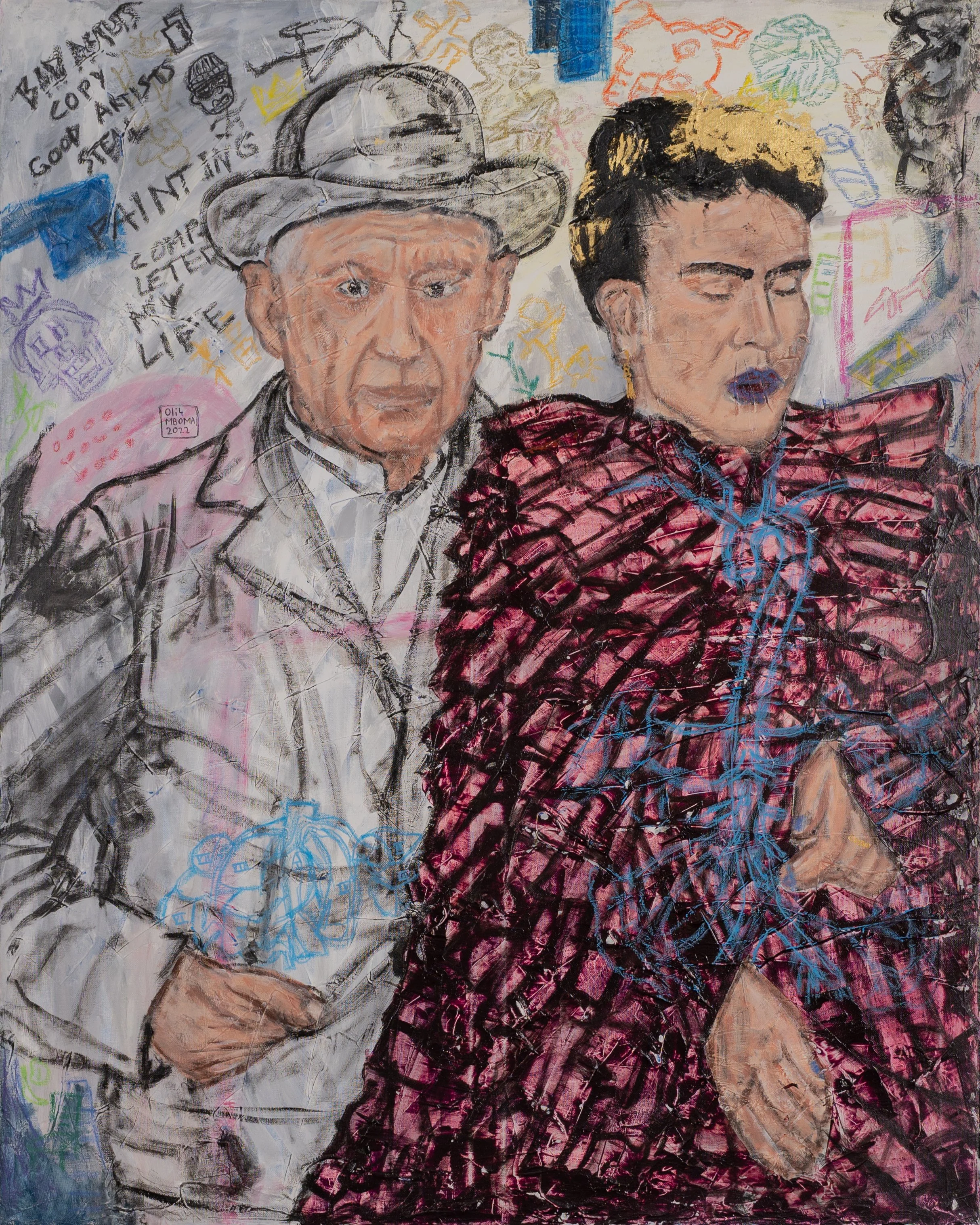 Acrylique, pastel, l’huile et feuille d'or 24 carats (24K) sur toile / 80x100 cm